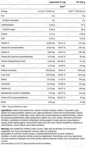 Available in Aruba, Bonaire, Curaçao, Sint Maarten, and Suriname – The Multivitamin Gummies by XXL Nutrition make getting your essential vitamins and minerals the tastiest part of your day! Packed with 10 key vitamins (including A, B-complex, and C) plus important minerals like zinc and chromium, these fruity red fruit–flavoured gummies are designed to support athletes and active individuals.