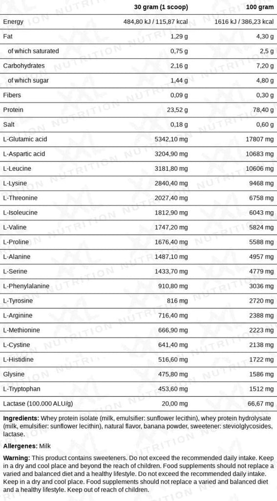 Lactase enzyme fortified – Even though Whey Isolate and Hydrolysate contain minimal lactose, we’ve added a high dose of lactase enzymes to ensure that even those with mild lactose sensitivity can enjoy it comfortably.